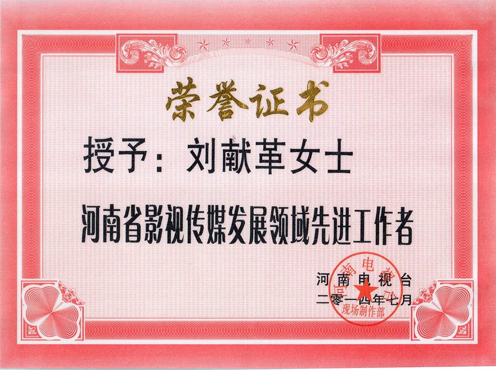 榮譽(yù)證書:河南傳媒界先進(jìn)工作者