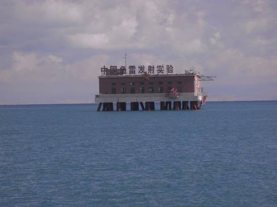 遠(yuǎn)遠(yuǎn)地依稀看到青海湖上的魚(yú)雷發(fā)射