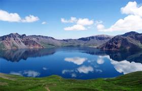 ,水面海拔達(dá)2150米,所以被稱(chēng)為“天池”。長(zhǎng)白山位于中、朝兩國(guó)的邊界,氣勢(shì)恢宏,資