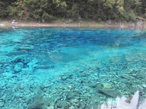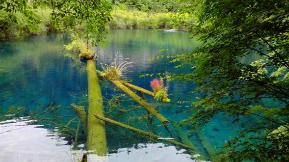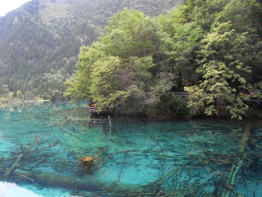 九寨溝風光——海底不朽的樹木是九寨千年的見證