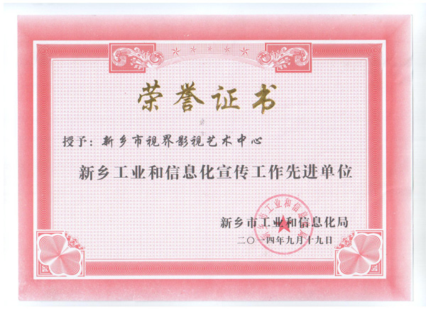 2014年新鄉(xiāng)市 政府委托工信局對新鄉(xiāng)視界影視給予獎勵,并發(fā)證書。